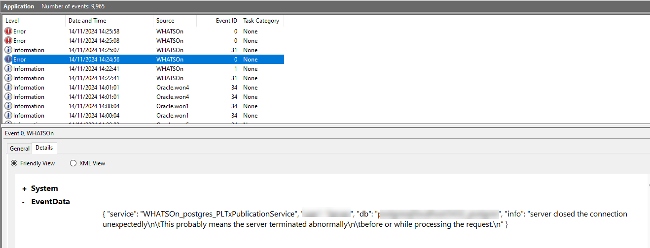 This issue has been fixed. When a Windows service loses connection to the database, a Windows event with ID 4 will be logged again and the service will attempt to reconnect afterwards.