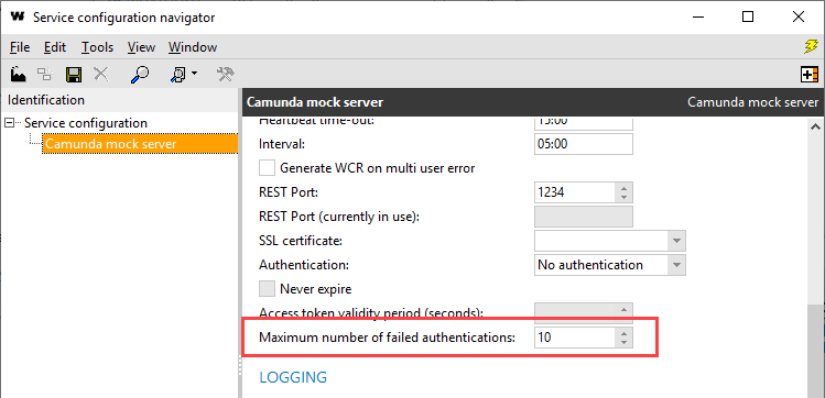 Therefore, in this version, a new property has been added to the REST services called Maximum number of failed authentications.