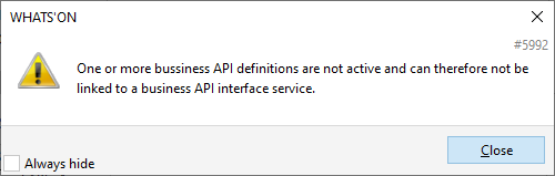 When the user tries to add an API that is not active, message 5992 is shown.